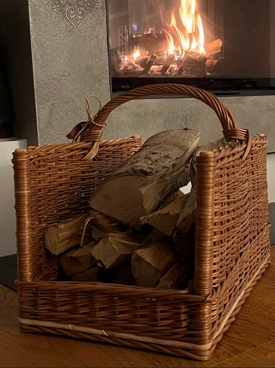 Aus Weide, Seiten gerade, in weiss oder Naturbraun mit schönem Holzboden.