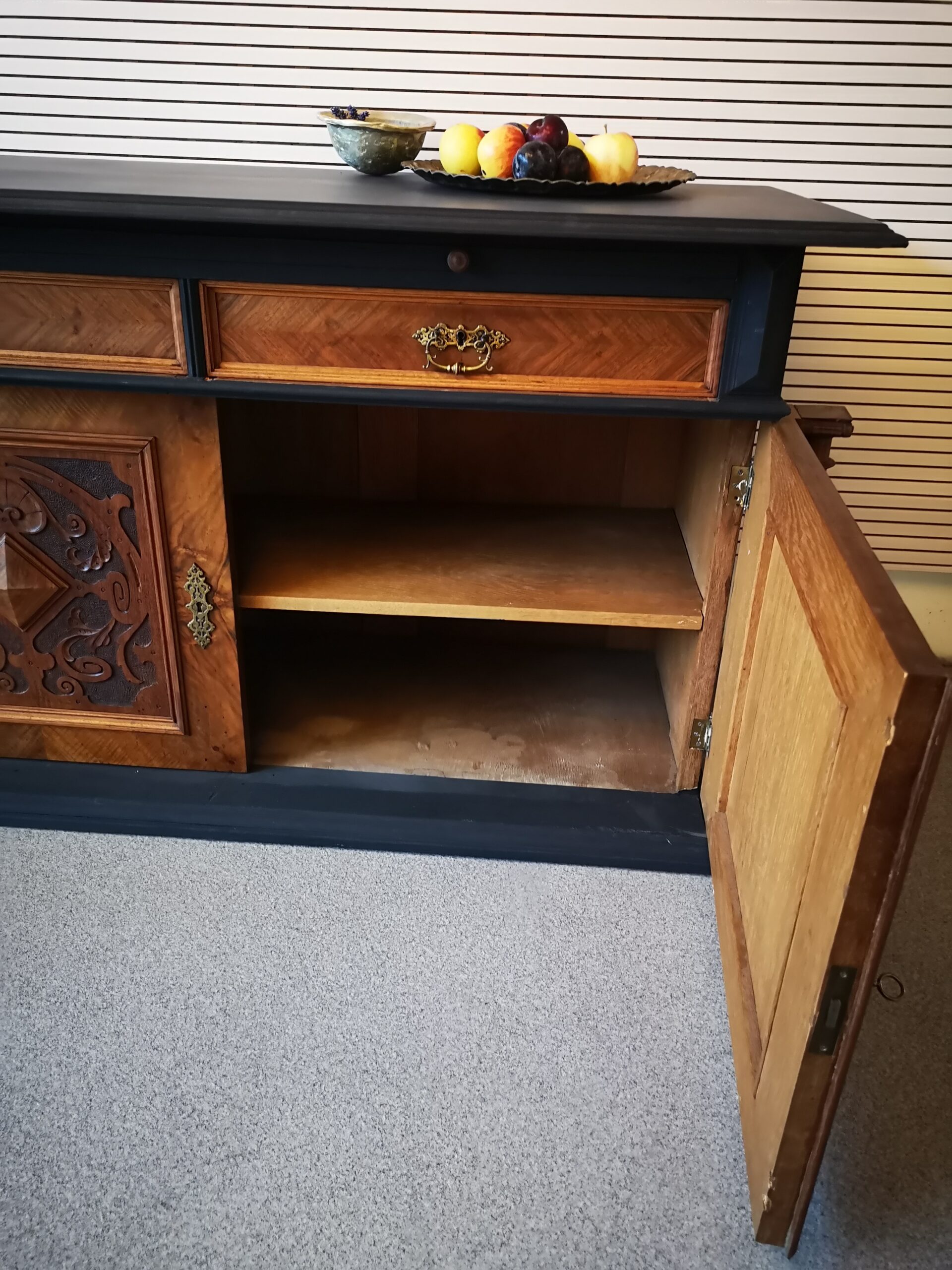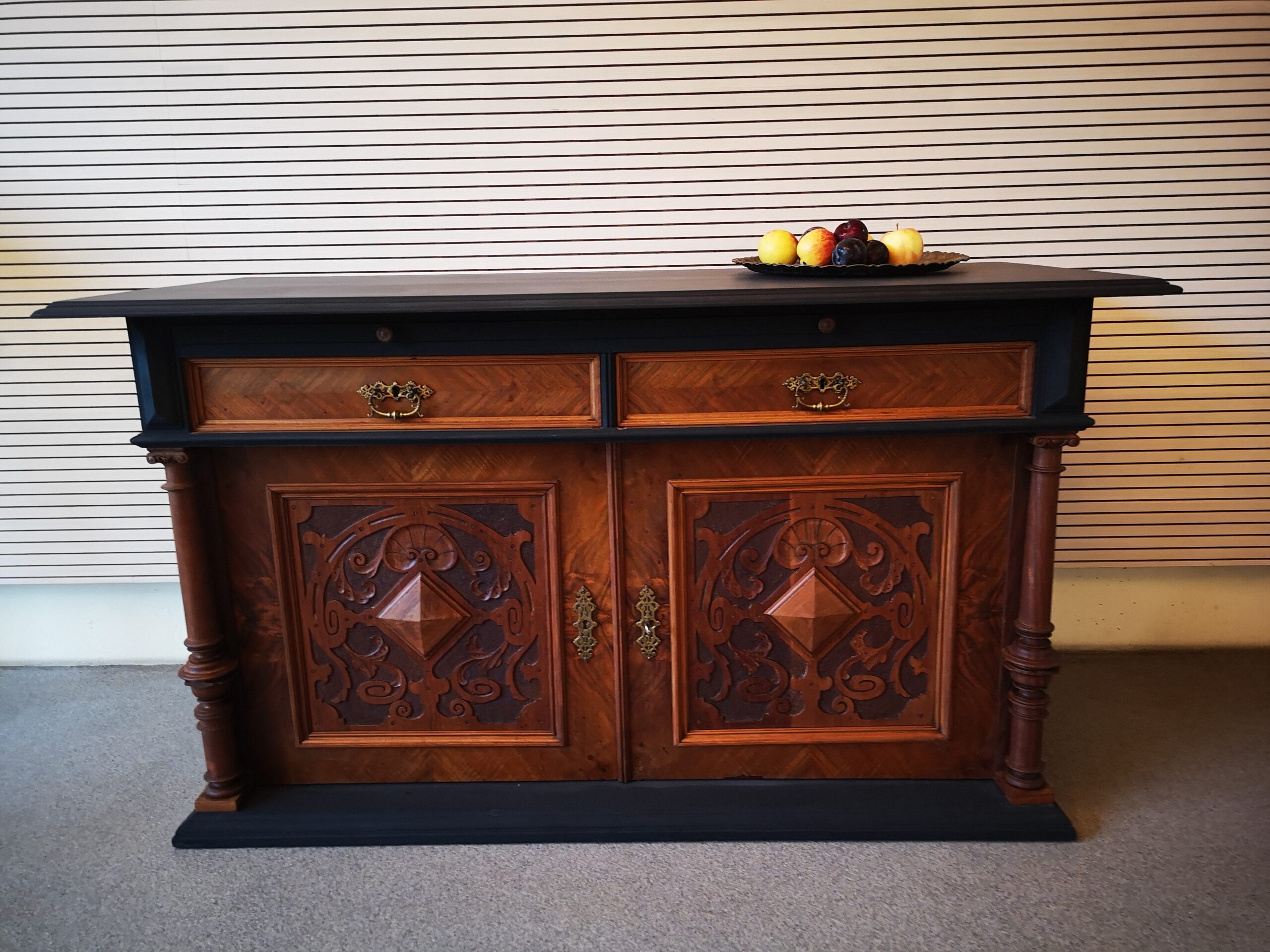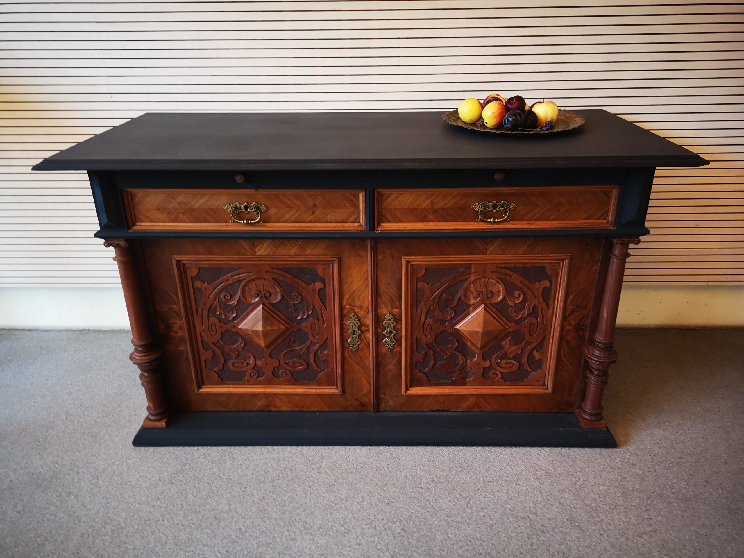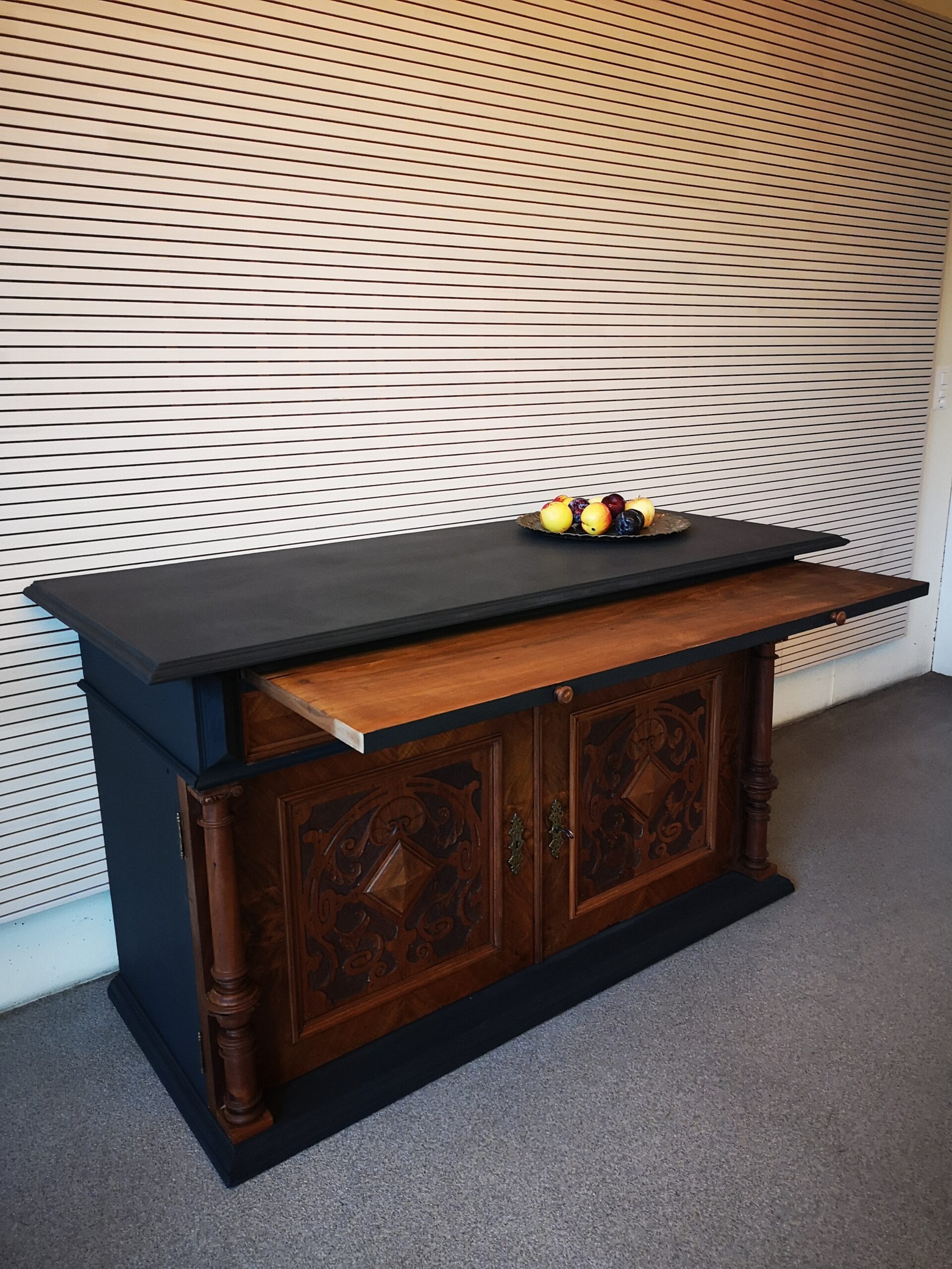 Nussbaumkorpus mit Schubladen und Auszug